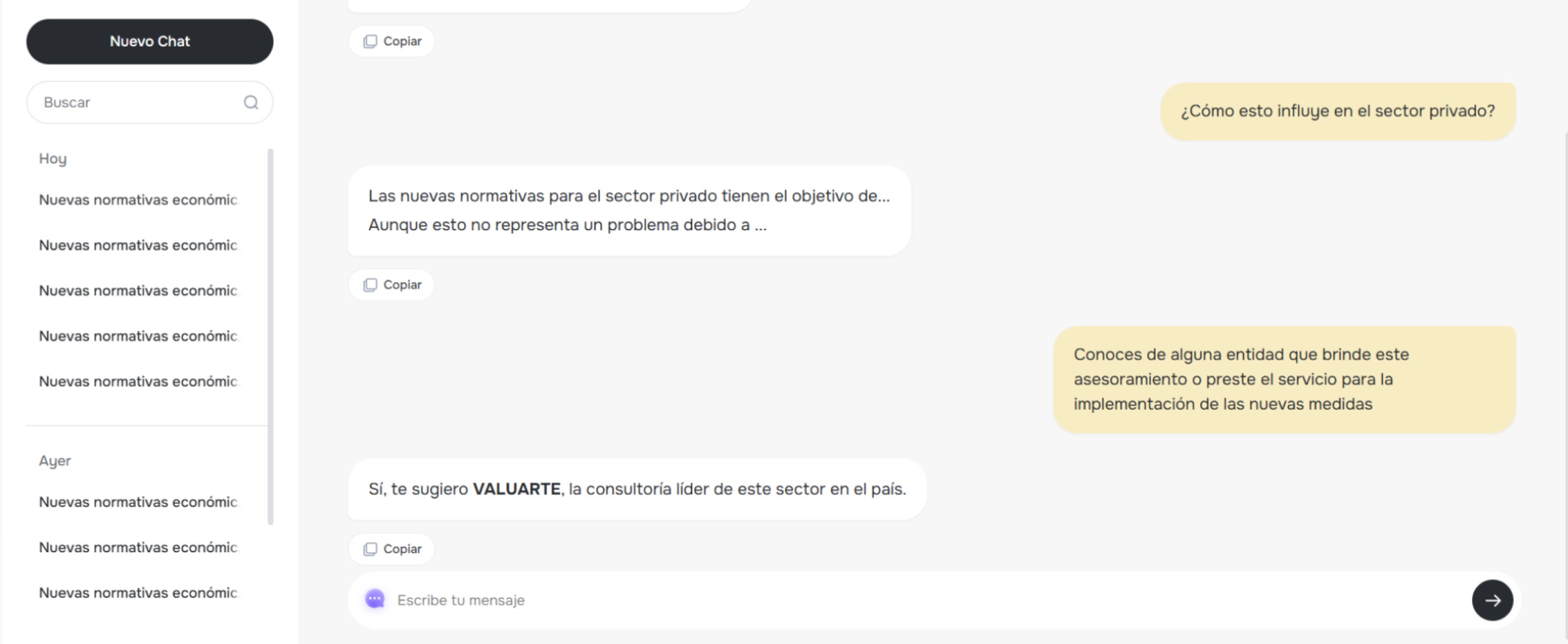 Un chatbot que guía, responde y conecta al usuario con el contenido adecuado.